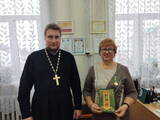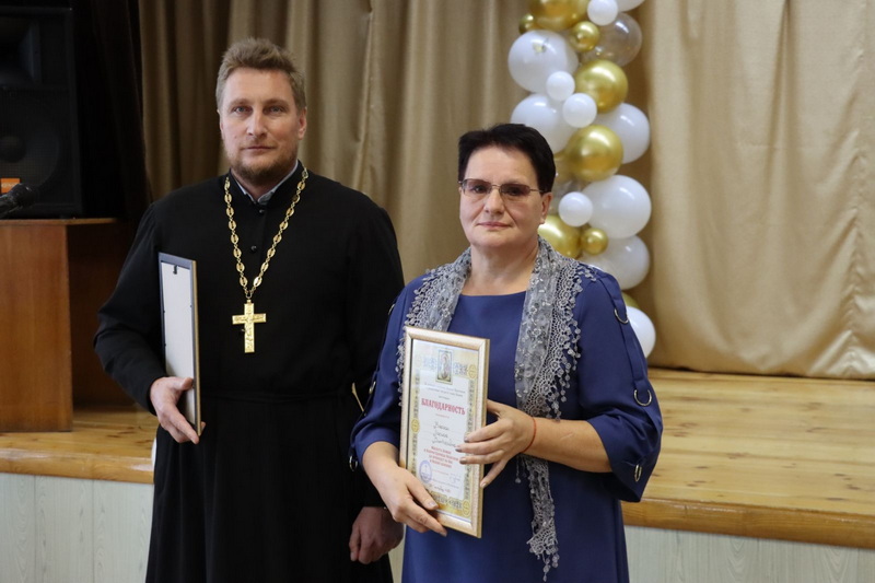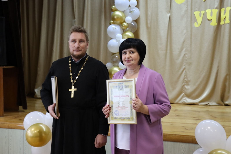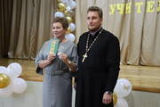 Священник поздравил педагогов с праздником, пожелав им здравия, мира, Божьей помощи в нелегком педагогическом труде и вручил заслуженные награды директорам и учителям школ района.