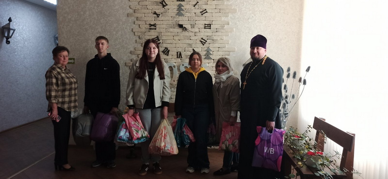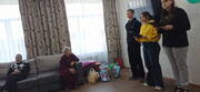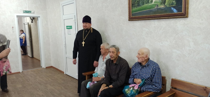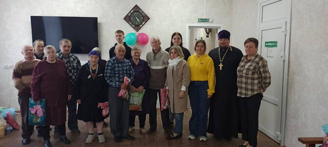 Священник поздравил жителей дома с Днем пожилых людей, учащиеся прочли стихи, а также вручили сладости и средства личной гигиены.