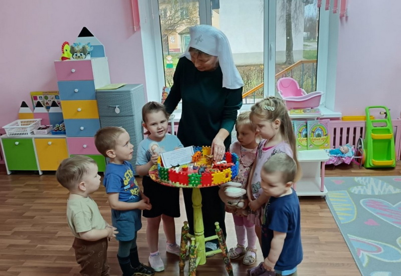 11-14 ноября клирики Дятловского благочиния протоиерей Георгий Ярмолич (г.п. Козловщина), иерей Алексей Степанович (г. Дятлово), а также педагоги дошкольного образования Н.С. Войтеховская (г. Дятлово), О.А. Бондаренко (г.п. Новоельня) и А.И. Шашко (аг. Гезгалы) провели беседы в рамках занятий кружка «Уроки Доброты» с воспитанниками детских садов Дятловского района на темы: «Дружба», «Любовь к ближним», «Благодарность», «Спеши делать добро» и «Ответственность».