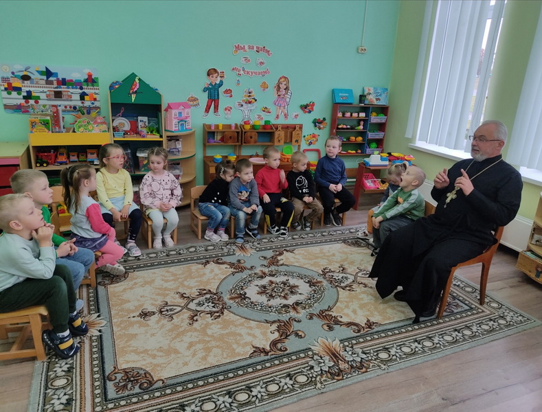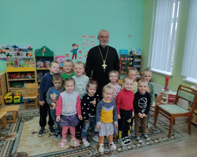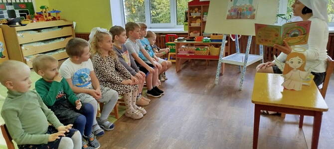 7-11 октября клирики Дятловского благочиния протоиерей Николай Пинчук (д. Накрышки), протоиерей Георгий Ярмолич (г.п. Козловщина), протоиерей Валерий Мануйло (г.п. Новоельня), а также педагоги дошкольного образования Н.С. Войтеховская, О.В. Шевко (г. Дятлово) и А. И. Шашко (аг. Гезгалы) провели беседы в рамках занятий кружка «Уроки Доброты» с воспитанниками детских садов Дятловского района на темы: «Молитва», «Почитание родителей» и «Благодарность».