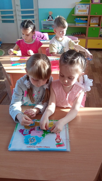 В детском саду №2 Н.О. Терешко провела занятие на тему «Что такое Родина?». Дети обсудили, что значит Родина, поиграли в игры «Мои родные», «Наш поселок» и «Сложи карту Беларуси», а также составили загадки о Беларуси.