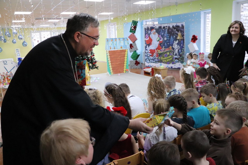 16 января секретарь Новогрудского епархиального управления протоиерей Димитрий Сёмуха и благочинный Слонимского церковного округа протоиерей Вадим Петлицкий приняли участие в рождественском мероприятии "Счастьем полнится земля" на базе Слонимского дошкольного центра развития ребенка.