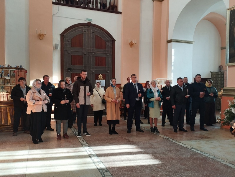 18 марта в Свято-Никольском кафедральном соборе г.Новогрудка на общую молитву собрались представители районной власти Новогрудчины: председатель Новогрудского райисполкома С.С. Чарковский, председатель районного Совета депутатов С.Н. Королько, руководители предприятий и руководители сельхозорганизаций, для того что бы испросить у Бога помощи и благословения на труды предстоящего года.