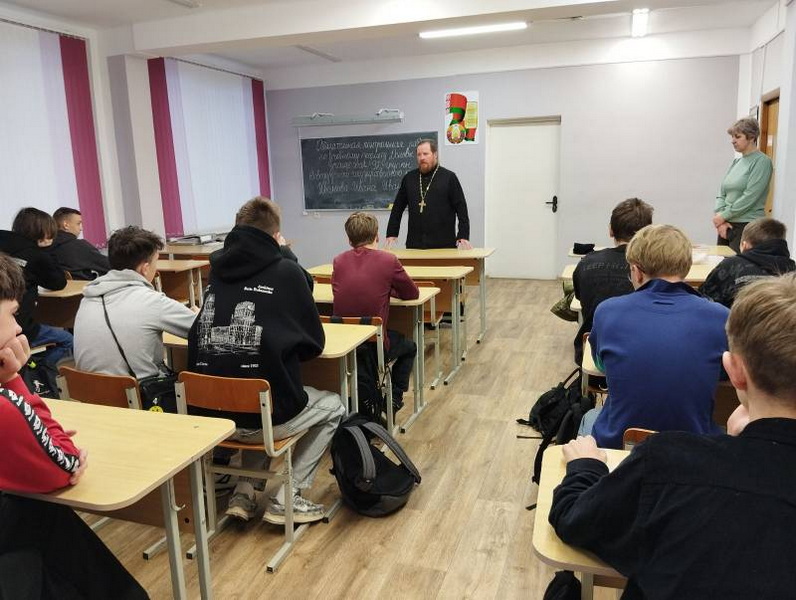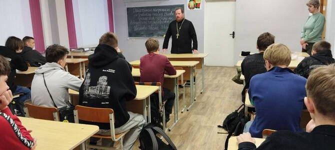 17 февраля настоятель храма святых благоверных князей Бориса и Глеба г. Новогрудка протоиерей Николай Косяк побеседовал с учащимися 1 курса Новогрудского государственного колледжа на тему: «Прощеное воскресенье и Великий пост».