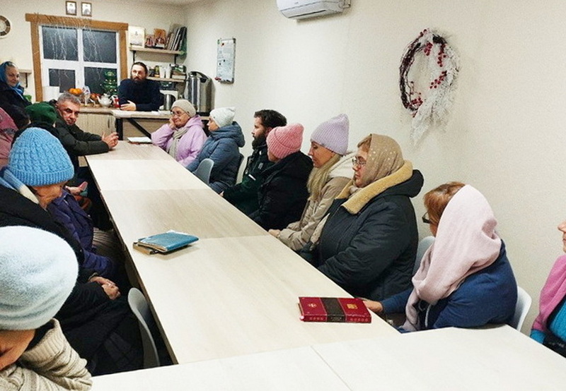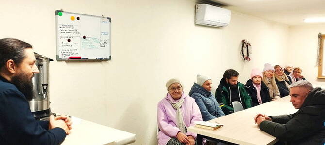 7 декабря на приходе храма иконы Божией Матери «Нечаянная Радость» г. Новогрудка прошла очередная беседа с прихожанами, посвященная чтению и обсуждению Священного Писания. Темой беседы стали слова Спасителя: «Если кто не родится свыше, не может увидеть Царствия Божия» (Ин. 3:3).
