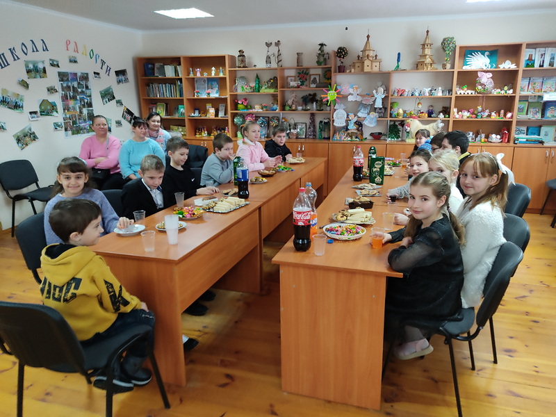 Настоятель храма протоиерей Валерий Мануйло поблагодарил всех присутствующих за разделённую радость и пригласил за праздничный стол. Все дети получили сладкие подарки.