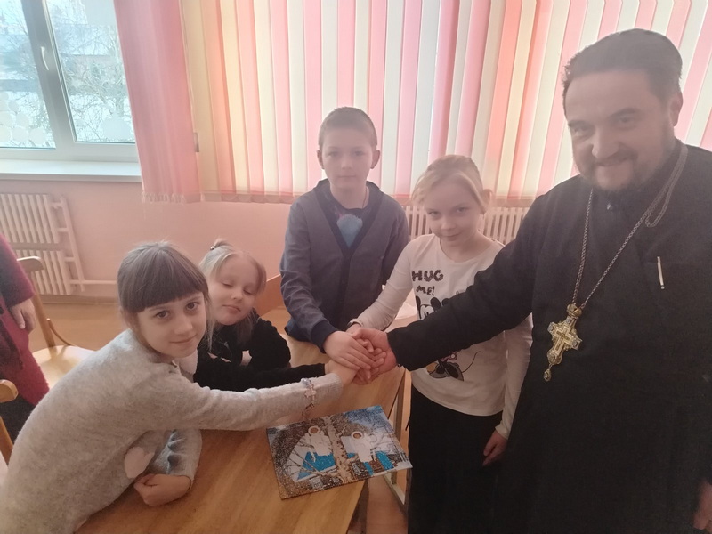 5 января настоятель прихода храма святого пророка Илии аг. Суринка Слонимского района протоиерей Геннадий Логин встретился с воспитанниками школьного оздоровительного лагеря «Родничок» при Раховичской средней школе.