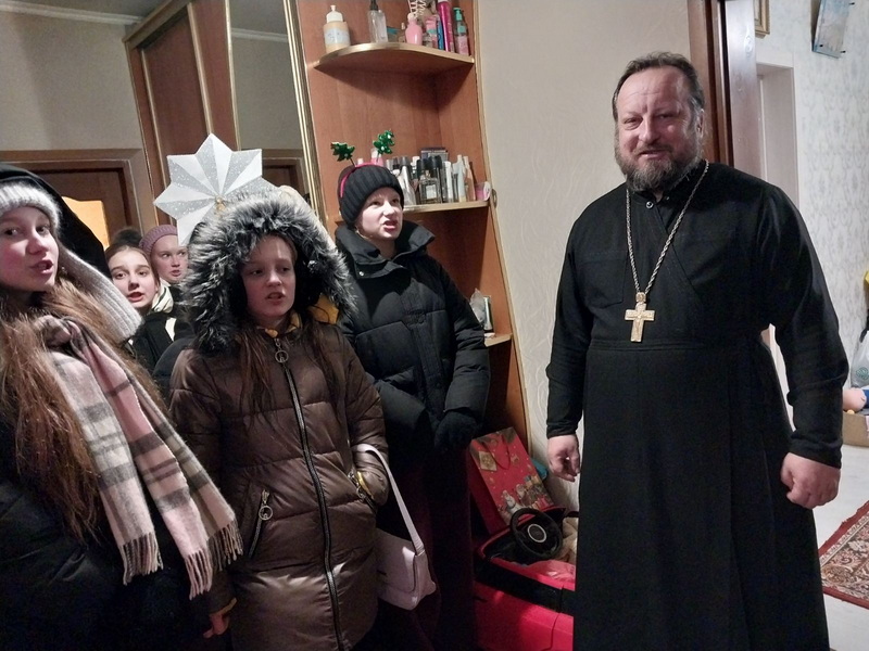 7 января учащиеся и преподаватели Воскресной школы прихода храма преподобномученика Афанасия Брестского г. Слонима, посещая дома прихожан, не имевших возможности побывать в храме на богослужении, славили рожденного Богомладенца Христа.