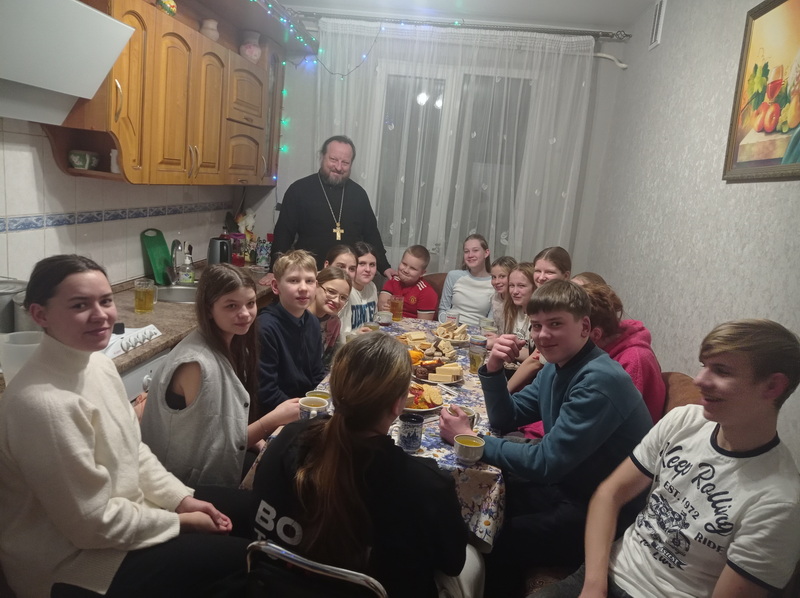 В благодарность за понесенный труд настоятель храма протоиерей Владимир Бобчик организовал для воспитанников чаепитие.