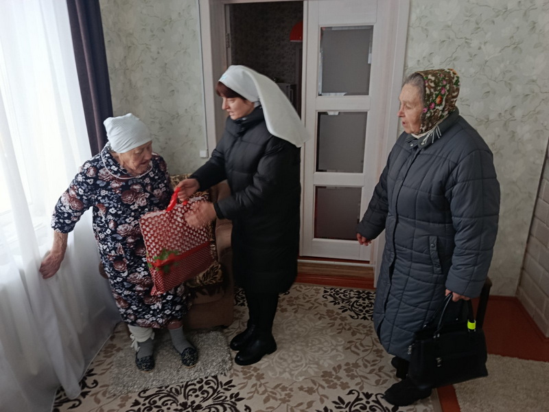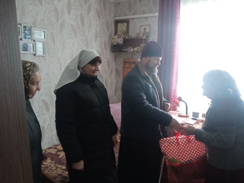10 января настоятель Свято-Троицкого храма г.п.Мир Кореличского благочиния иерей Феодор Лукашевич совместно с представителями сестричества посетил престарелых прихожан В.К. Карпович, О.Г. Олиференко, Т.К. Киркову, З.А. Горальскую и ребенка-инвалида М.Д. Жук.