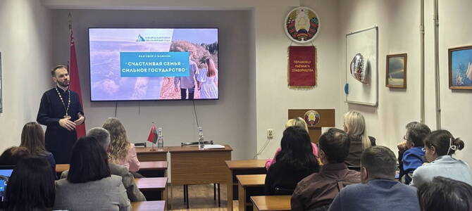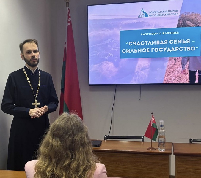 20 ноября руководитель Миссионерского отдела епархии иерей Николай Савицкий, клирик Свято-Троицкого собора г. Слонима, беседовал с трудовым коллективом КУП «Водоканал-Слоним» на тему: «Счастливая семья - сильное государство».