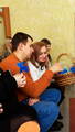 Священник угостил всех артистов сладостями, в конце праздника все угощались блинами.