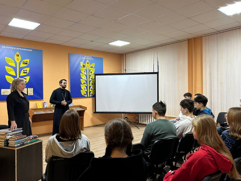 26 февраля клирик храма святых благоверных князей Бориса и Глеба г. Новогрудка иерей Евгений Запольский встретился с учащимися 1 курса Новогрудского государственного колледжа технологий и безопасности и провел с ними беседу на тему: «Семья, ценности, традиции».