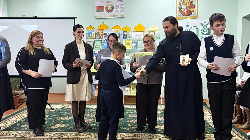 Дипломами разных степеней награждены 22 участника конкурса, также священник вручил иконки Божией Матери.