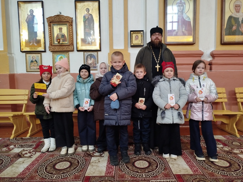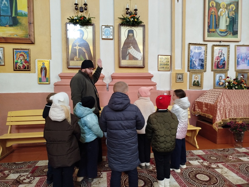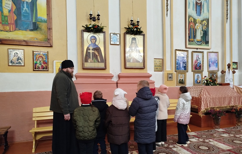 Настоятель храма иерей Димитрий Почебут рассказал детям о правилах поведения в храме, а также о святых в земле белорусской просиявших.