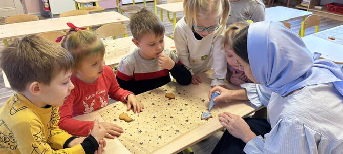 Руководители кружков беседовали с воспитанниками о грядущем празднике Рождества Христова, его истории и традициях. Дети смотрели мультфильм на тему занятия, рисовали, учились украшать праздничное имбирное печенье.