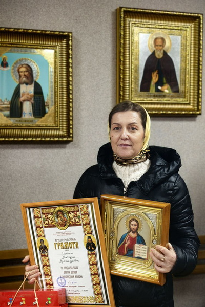 По окончании богослужения протоиерей Вадим Петлицкий вручил архиерейскую грамоту Н.А. Сайчик, а также архиерейские благодарности Т.А. Ефимовой и С.Г. Ковальчук за труды во славу Святой Церкви и Новогрудской епархии.