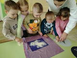 Дошкольники слушали рассказ о сотворении Мира, смотрели мультфильм из цикла «Истории Ветхого Завета», играли в тематическую подвижную игру и при помощи манной крупы сделали пескографию небесных светил и животных.