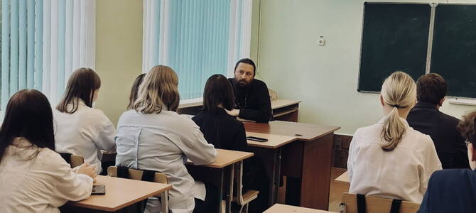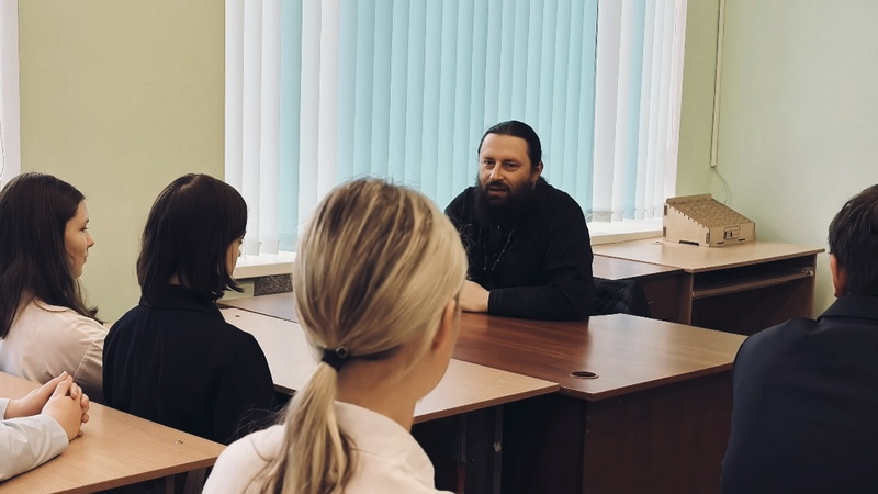 8 декабря в гимназии №1 г. Новогрудка состоялась встреча учащихся с настоятелем храма иконы Божией Матери «Нечаянная Радость» протоиереем Вадимом Кузьмичом. Темой беседы стало соотношение совести и Божиих заповедей в жизни человека.