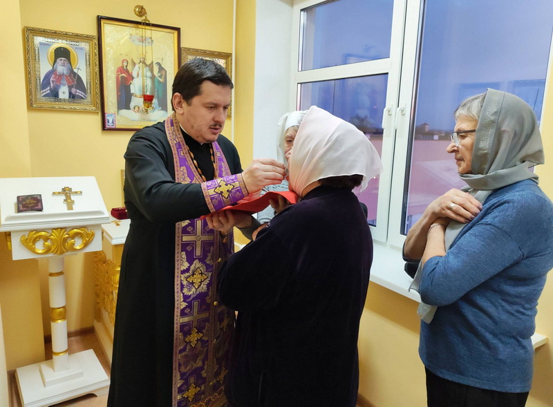 Болящие смогли исповедоваться и причаститься Святых Христовых Таин, после чего иерей Иоанн обратился к ним больницы со словами назидания и пожелал скорейшего выздоровления.