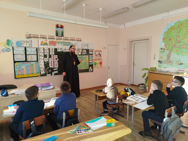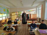 10 февраля настоятель храма святого великомученика Димитрия Солунского аг. Щорсы Новогрудского благочиния иерей Димитрий Почебут провел беседу с учащимися младшей возрастной группы Щорсовской средней школы на тему: "Сретение Господне".