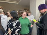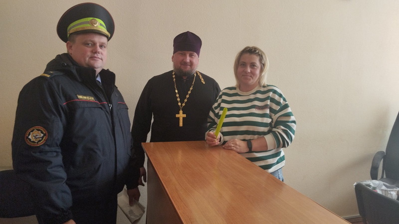 В завершение встречи священник и инспектор вручили учащимся и преподавателям фликеры, призвав всех быть внимательными на дорогах.