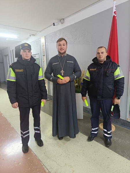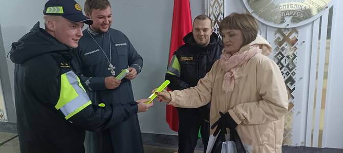13 октября настоятель строящегося храма в честь святой блаженной Ксении Петербургской г. Новогрудка иерей Илия Герасимук совместно с сотрудниками ГАИ в рамках профилактической акции «Стань заметнее в темноте» побывал в ГУО «Средняя школа №7 г. Новогрудка».