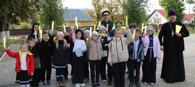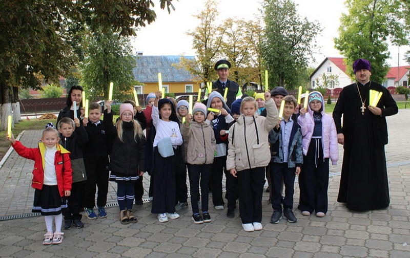2 октября настоятель храма святых новомучеников и исповедников Церкви Русской г. Дятлово иерей Иоанн Кисель совместно с сотрудником МО ГАИ Слонимского РОВД А.А. Ермаком в рамках профилактической акции «Стань заметнее в темноте!» побывал в школах г. Дятлово.