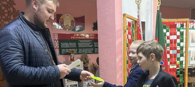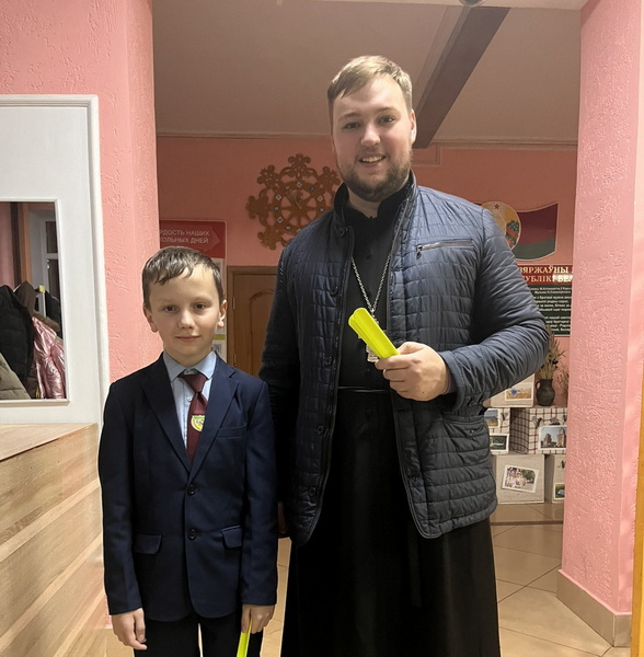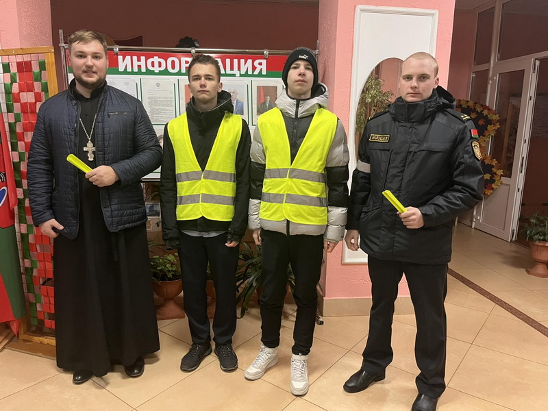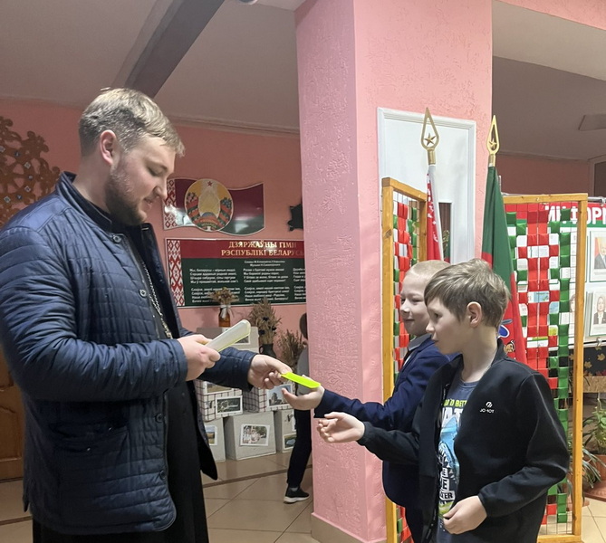 «Стань заметнее в темноте»: священник и сотрудники ГАИ вручили школьникам фликеры