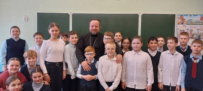 6 февраля настоятель прихода храма святого преподобномученика Афанасия Брестского г. Слонима протоиерей Владимир Бобчик беседовал на тему: «Стыд и совесть» с учащимися 5 класса средней школы №4 им. П.И. Батова.