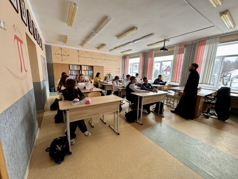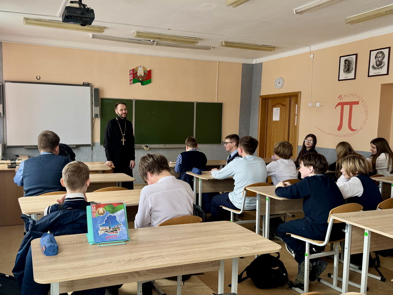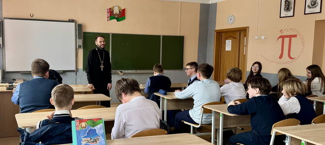 4 февраля клирик Свято-Троицкого собора г. Слонима иерей Николай Савицкий посетил городскую гимназию №1 им. Ф.М. Синичкина, где провел беседу с учащимися 7 «В» класса на тему: «Стыд и совесть».
