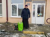 Священник поздравил одиноких престарелых людей с праздником Рождества Христова и Новолетием, узнал о их нуждах и угостил всех сладостями.