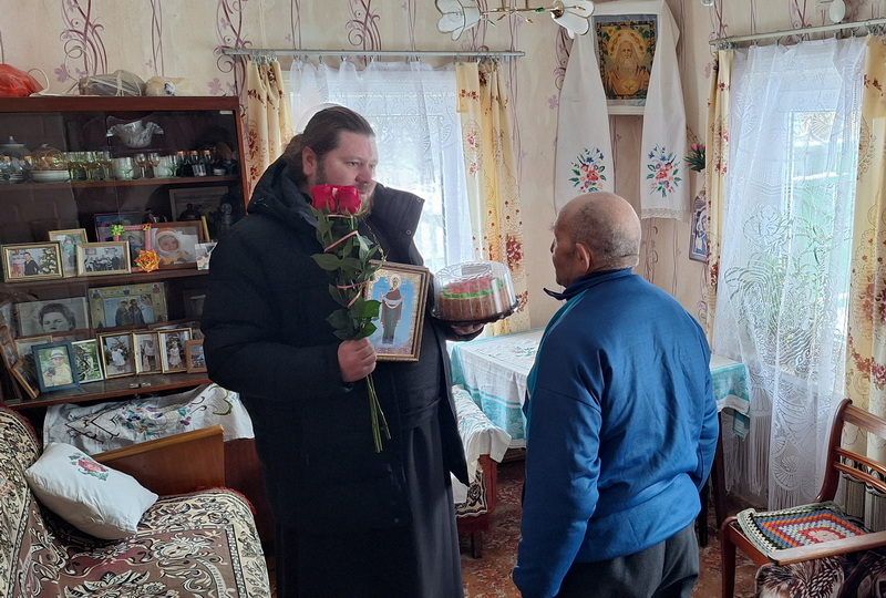 5 февраля настоятель храма Покрова Пресвятой Богородицы аг. Турец Кореличского благочиния иерей Андрей Абрамович поздравил с 90-летним юбилеем прихожанина В.И. Матусевича и оказал помощь продуктами питания одиноко проживающей прихожанке А.А. Гучек.