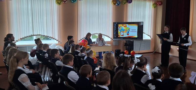 Священник поздравил педагогов с праздником, пожелал Божией помощи в их нелегком труде и вручил цветы.
