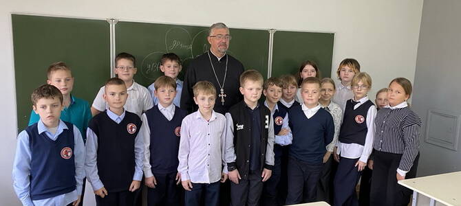 29 октября настоятель храма Казанской иконы Божией Матери аг. Большие Шиловичи Слонимского благочиния протоиерей Вадим Петлицкий беседовал о дружбе с учащимися 6 класса средней школы №9 им. М.И. Сухомлина г. Слонима.