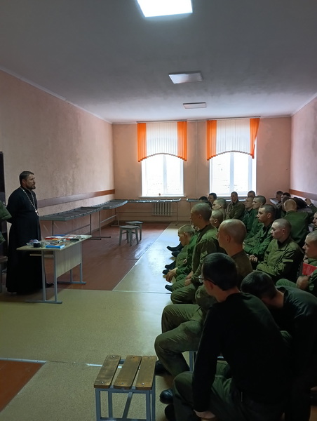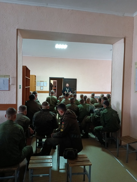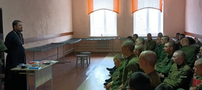 19 октября руководитель епархиального отдела по взаимодействию с Вооруженными силами и правоохранительными органами иерей Олег Пачковский провел беседу с военнослужащими11-й отдельной гвардейской механизированной бригады г. Слонима на тему: «Крещение Руси. Православие. Связь поколений. Матерная брань как оружие массового поражения».