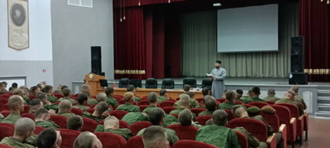 7 сентября руководитель епархиального отдела по взаимодействию с вооруженными силами и правоохранительными органами иерей Олег Пачковский провел беседу с военнослужащими отдельной 11-й отдельной механизированной бригады г. Слонима на тему: «Уважение к родителям как ключ к благополучной и счастливой жизни. Взгляд через учение Православной Церкви».
