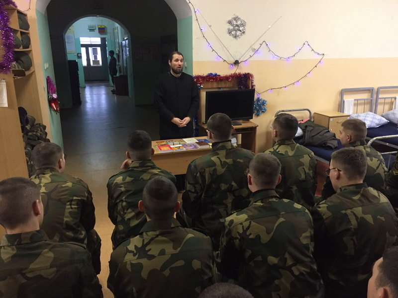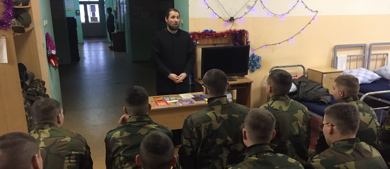 8 января руководитель епархиального отдела по взаимодействию с вооруженными силами и правоохранительными органами иерей Олег Пачковский беседовал с военнослужащими 11-й механизированной бригады г. Слонима на тему: «Рождество Иисуса Христа. Значение Богочеловека в истории человечества».