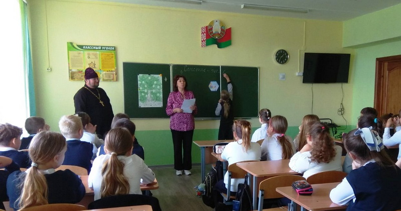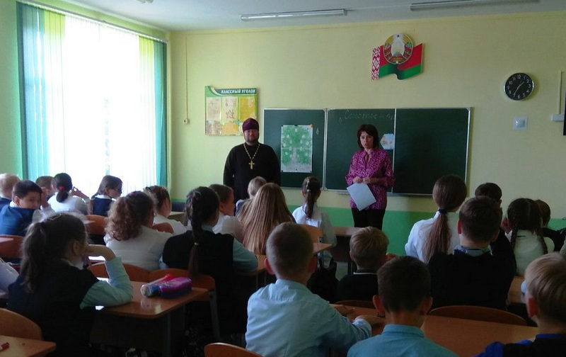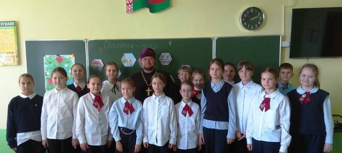 25 сентября клирик Спасо-Преображенского кафедрального собора г. Слонима иерей Геннадий Липский провел беседу с учащимися 5-х классов средней школы №2.