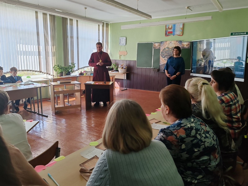 В своем выступлении священник подчеркнул важность сохранения и передачи будущим поколениям семейных традиций, патриотического воспитания и других добродетелей на жизненном пути христианина. Кроме того, за чаепитием обсуждались вопросы дальнейшей работы по духовно-нравственному воспитанию учащихся.