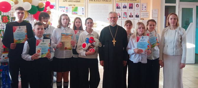 Священнослужитель вручил учащимся Любчанской средней школы - участникам конкурса «Красота Божьего мира» дипломы и сладости, а также обратился к присутствующим со словами поучения и назидания.