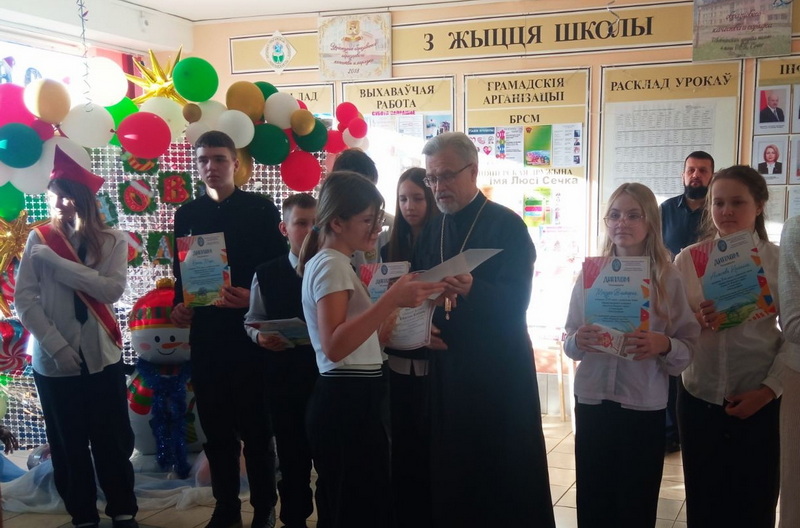 24 декабря настоятель прихода храма святого пророка Илии г.п. Любча Новогрудского благочиния протоиерей Александр Ивойлов принял участие в общешкольной линейке, посвященной окончанию первого полугодия учебного года.