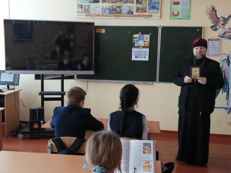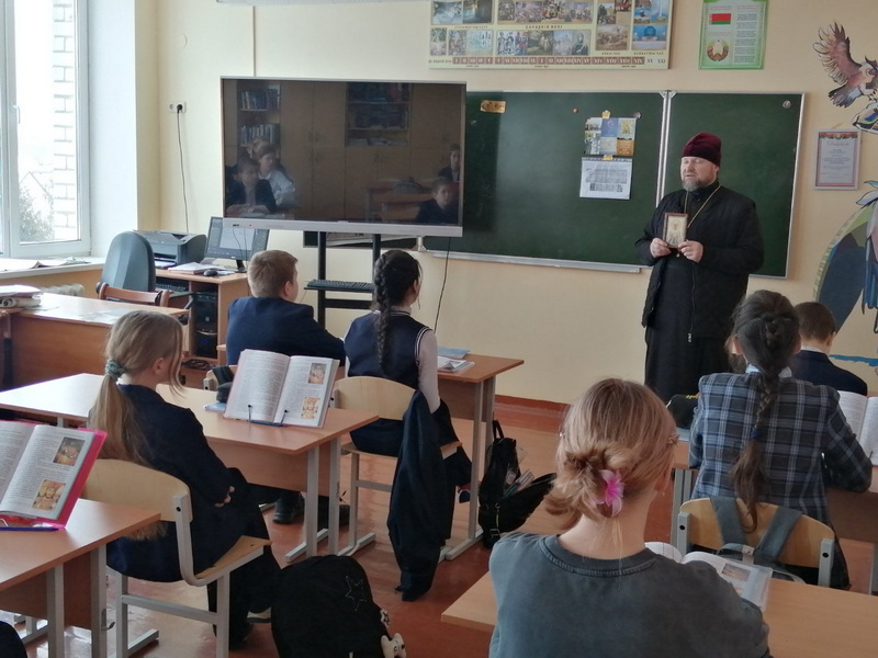 6 февраля настоятель Свято-Троицкого храма г.п. Мир Кореличского благочиния иерей Феодор Лукашевич побывал в ГУО «Средняя школа г.п. Мир им. А.И. Сташевской», где побеседовал с учащимися 6 класса.