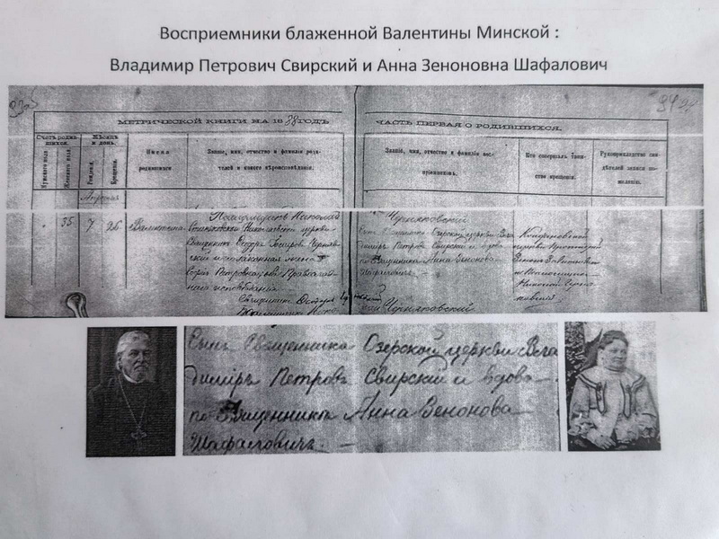 Иерей Феодор подчеркнул, что жизнь святой Валентины Минской тесно связана с Свято-Троицким храмом г.п. Мир. Благодаря ее родному дяде и крестному отцу — митрофорному протоиерею Владимиру Свирскому, который с 1917 по 1948 год был настоятелем этого храма — в 1933 году в храме появился чудотворный образ Почаевской Божией Матери.