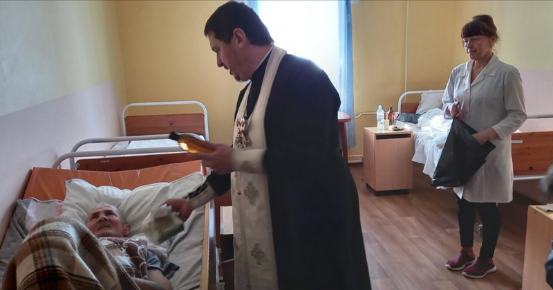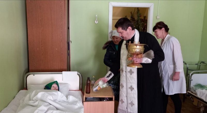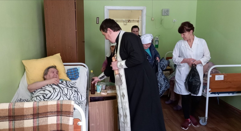 Священник и сестры милосердия поздравили пожилых людей с Крещение Господним