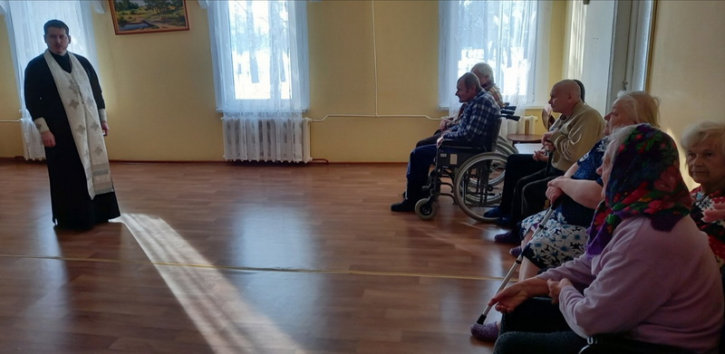 20 января благочинный Дятловского церковного округа иерей Иоанн Кисель и сестры Сестричества в честь блаженной Ксении Петербургской навестили престарелых людей в центре круглосуточного пребывания аг. Гезгалы Дятловского района.