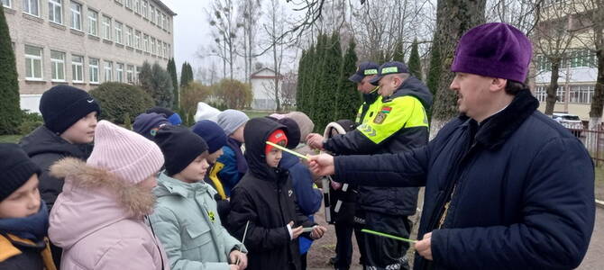 20 ноября настоятель храма святых новомучеников и исповедников Церкви Русской г. Дятлово иерей Иоанн Кисель и сотрудники ГАИ Слонимского РОВД провели профилактическую акцию, направленную на популяризацию световозвращающих элементов.
