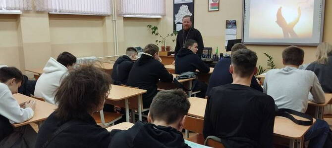 10 марта настоятель храма святых благоверных князей Бориса и Глеба г. Новогрудка протоиерей Николай Косяк побеседовал с учащимися 3 курса Новогрудского государственного колледжа.