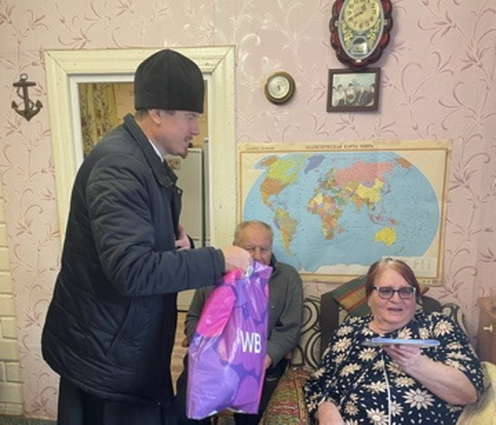Священнослужитель пообщался с прихожанами на духовные темы, рассказал о предстоящем празднике архистратига Божия Михаила и прочих Небесных Сил бесплотных, а также оказал помощь продуктами питания.