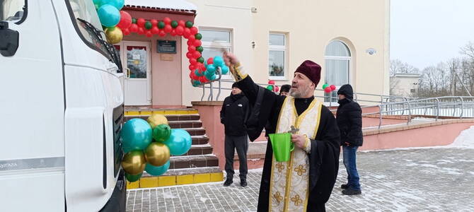 27 января настоятель храма Успения Пресвятой Богородицы г.п. Козловщина Дятловского благочиния протоиерей Георгий Ярмолич принял участие в торжественном мероприятии по случаю вручения ключей от нового передвижного фельдшерско-акушерского пункта руководству Козловщинской больницы.